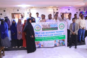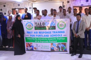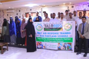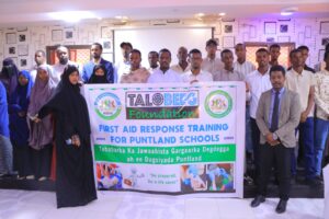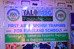With the enthusiastic support of young professionals in Galkaio, Talobeeg Foundation successfully launched a pioneering First Aid Response Training for Puntland Schools, marking a significant step toward improving school health and safety across the region.